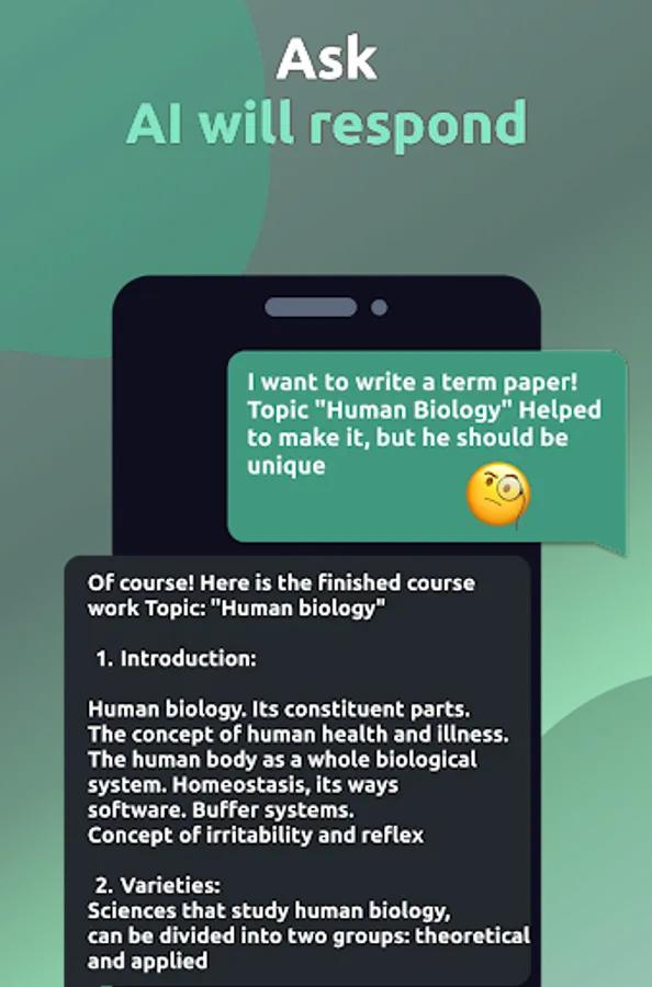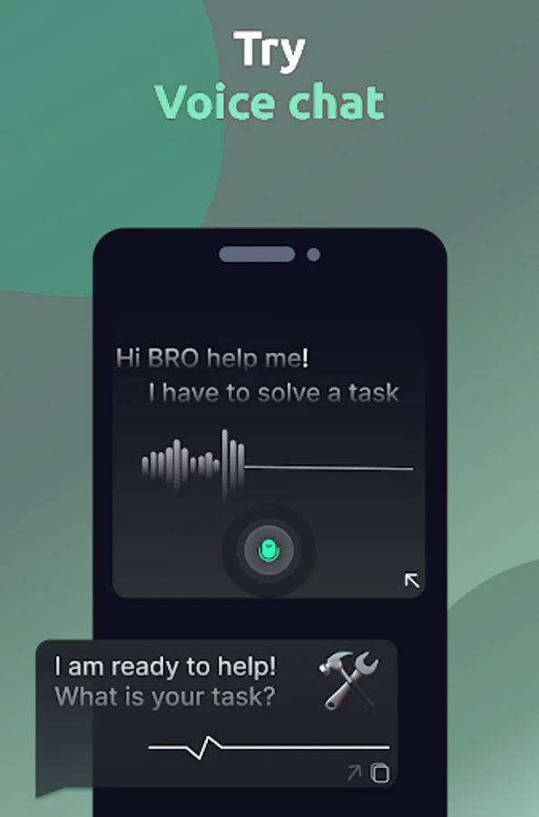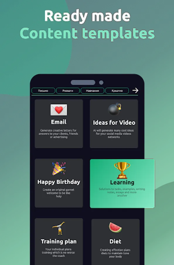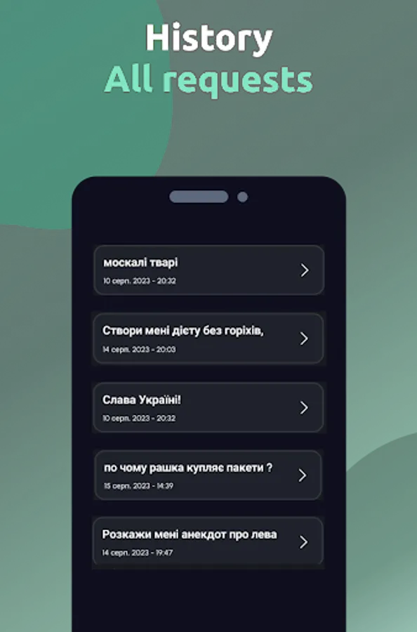 ● The ability to conduct dialogues with an AI chatbot (AI remembers the complete history of the chat)