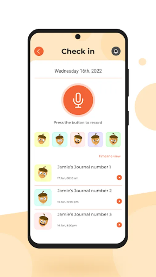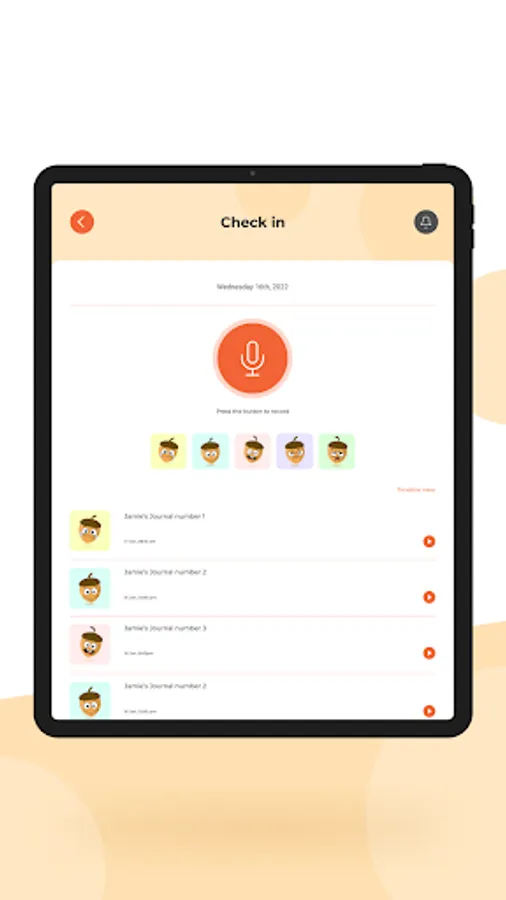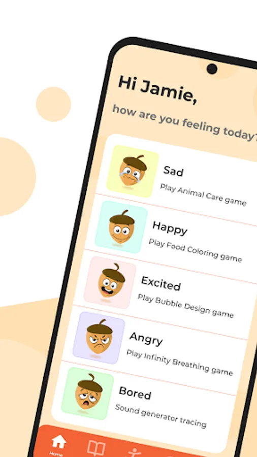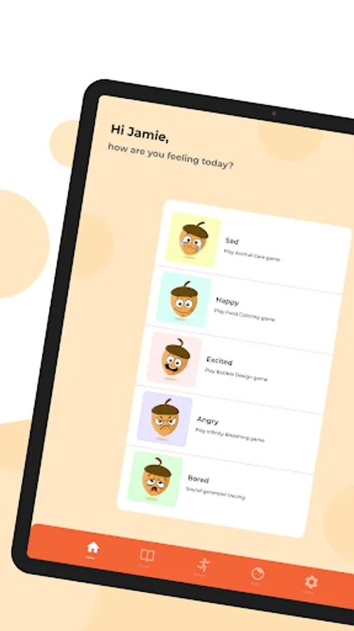 The Check In screen guides children to choose how they are feeling at any particular time. This takes them on a journey of mindfulness, discovering tools for coping and gaining resiliency with a fun, interactive video.