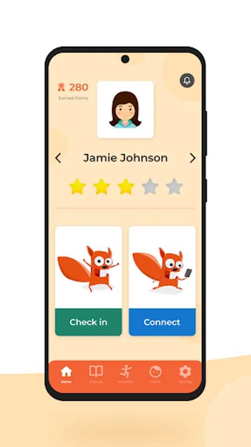 Self-care stars are awarded each time your child checks in or connects, building personal empowerment and intrinsic motivation.