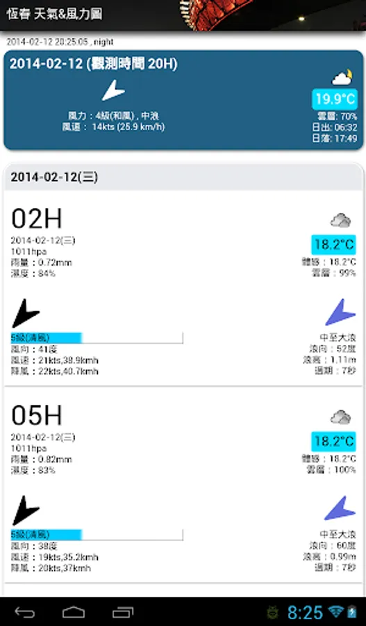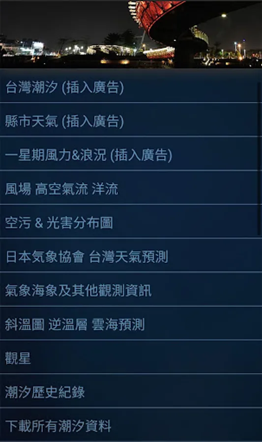 Provides various weather and meteorological data in Taiwan as well as graphical tide display. The information provided includes weather, tide text, tide graph, wind graph, wind direction forecast, wind field graph, wind direction indicator, wave height, ocean current, wave cycle, wave Direction, temperature, earthquake, air quality PM2.5, personnel administration bureau, typhoon forecast, sea temperature, sea wave height, sea temperature, satellite cloud image, stargazing point weather information, cloud sea oblique temperature map, inversion layer, light pollution, etc.