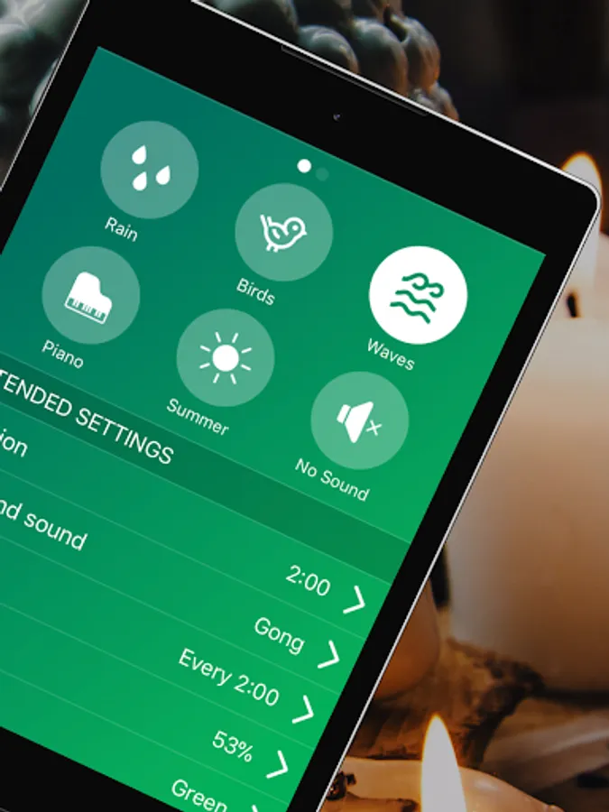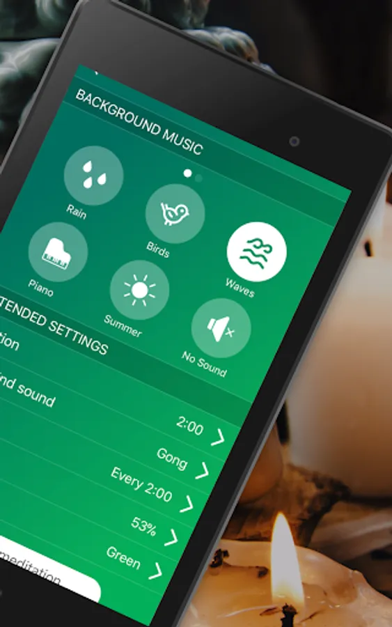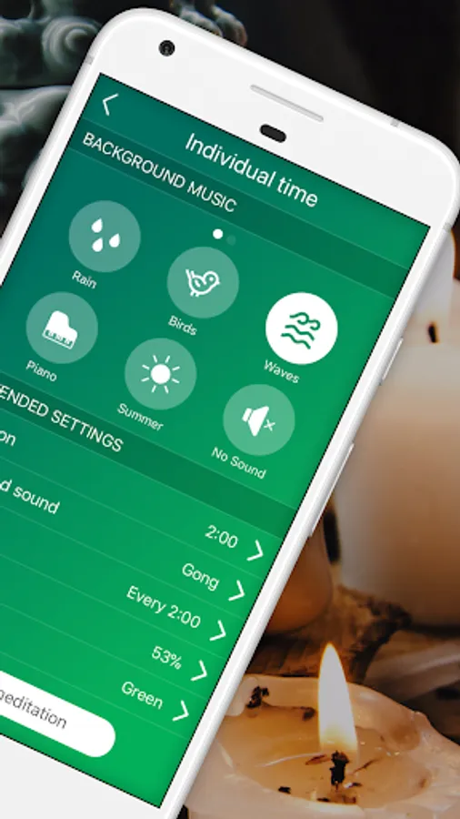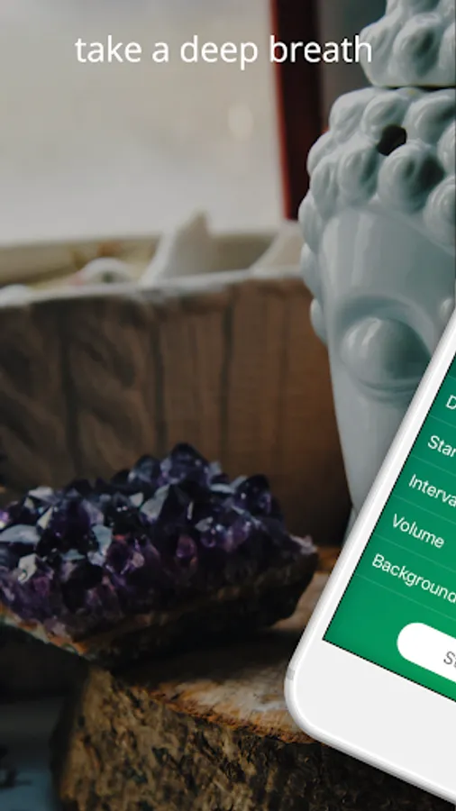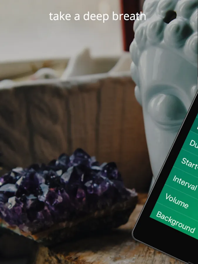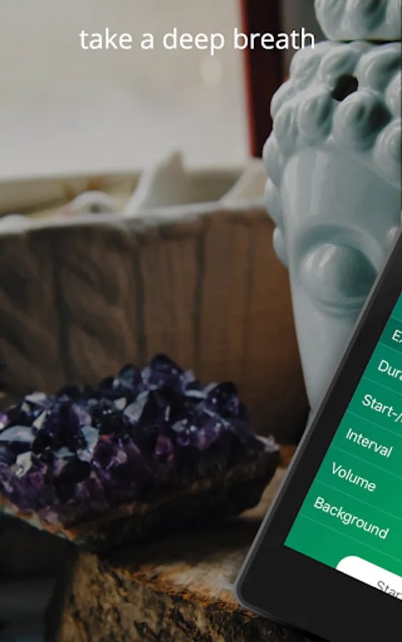 - If you want to accompany the meditation with background music, breathe offers you the relaxing sound of your choice.