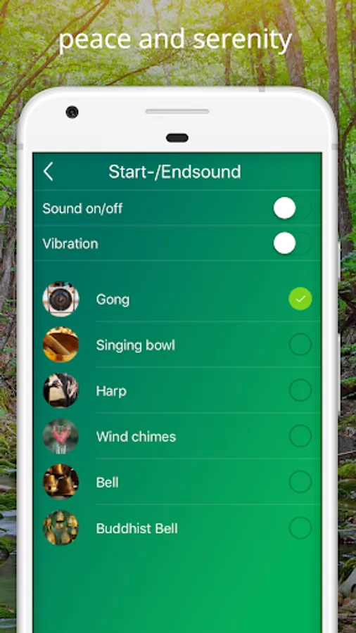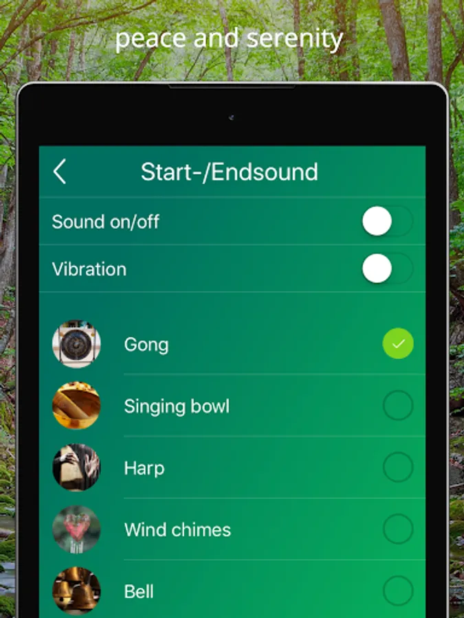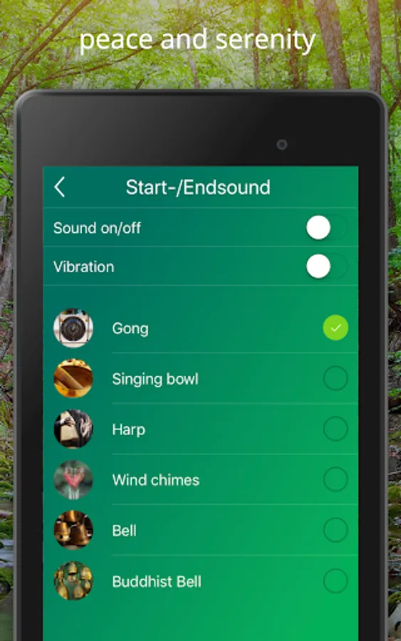 Anyone who would like to meditate in silence uses only the individually selectable tones - gong, triangle or harp, the beginning and the end of the meditation.
