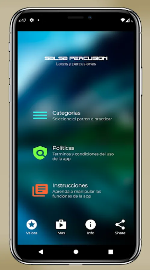 Salsa Percussion is an application aimed at amateur percussionists who want to know and learn the basic patterns of salsa with a great variety of combinations in such a way that they learn to play all the basic percussions that make up salsa; contains:
