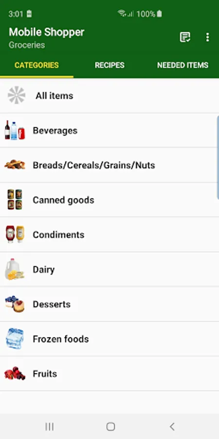 • The order of the shopping categories as they appear in the needed list can be changed to match how you travel through a store.