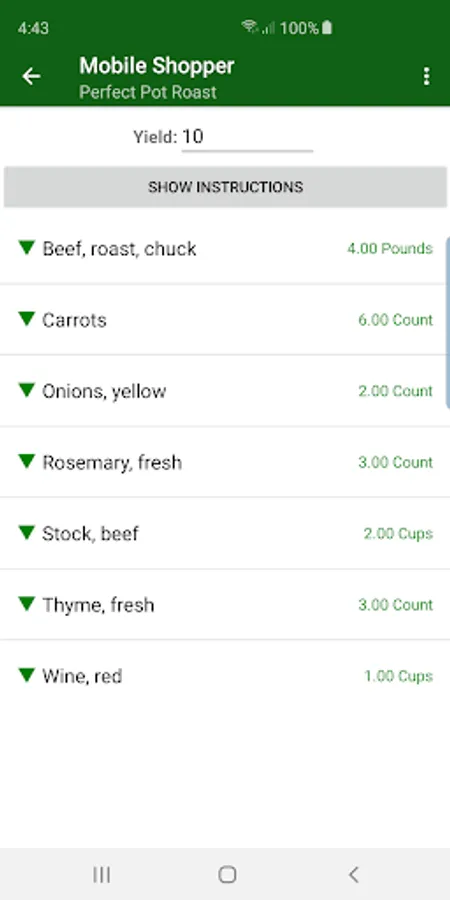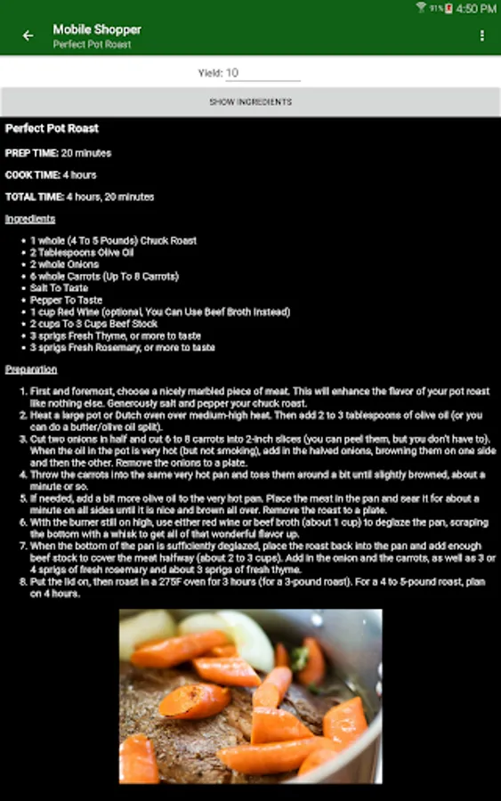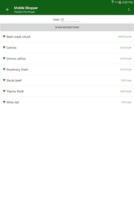 • Recipes support the concept of "staples" - by default items marked as staples are not placed into your "Needed Items" list (although you can just tap a button to view and include them anyway).