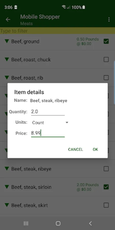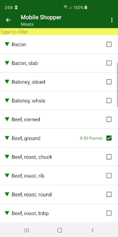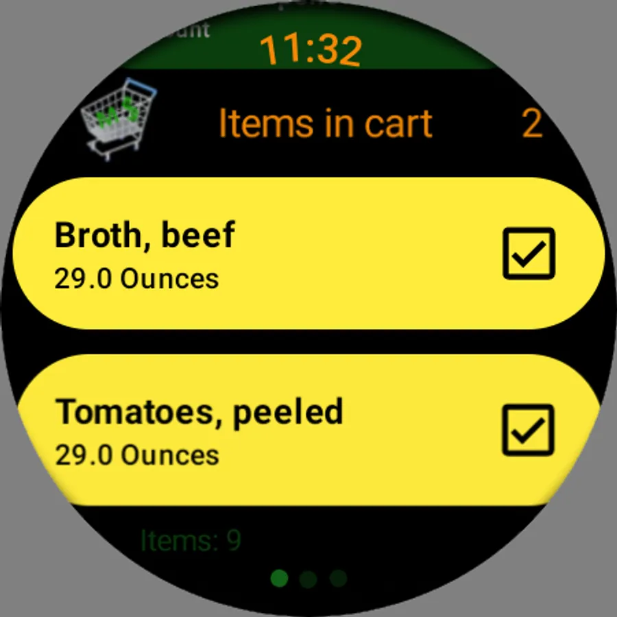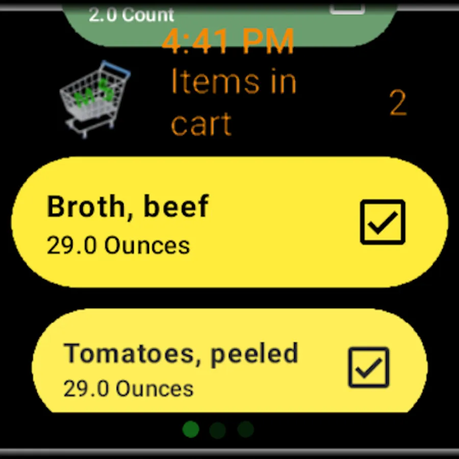 • Needed items can be checked off as they are placed in your actual shopping cart, and then appear in a separate “Items in cart” section.