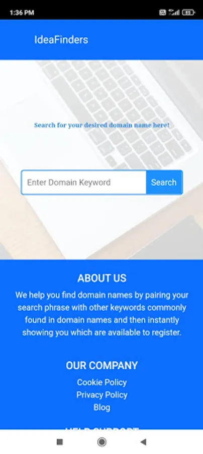 IdeaFinders is a perfect app for the domainers. It find the most amazing unregistered domain names by putting your keyword to it. It will show many results from which you can choose names to register yourself.
