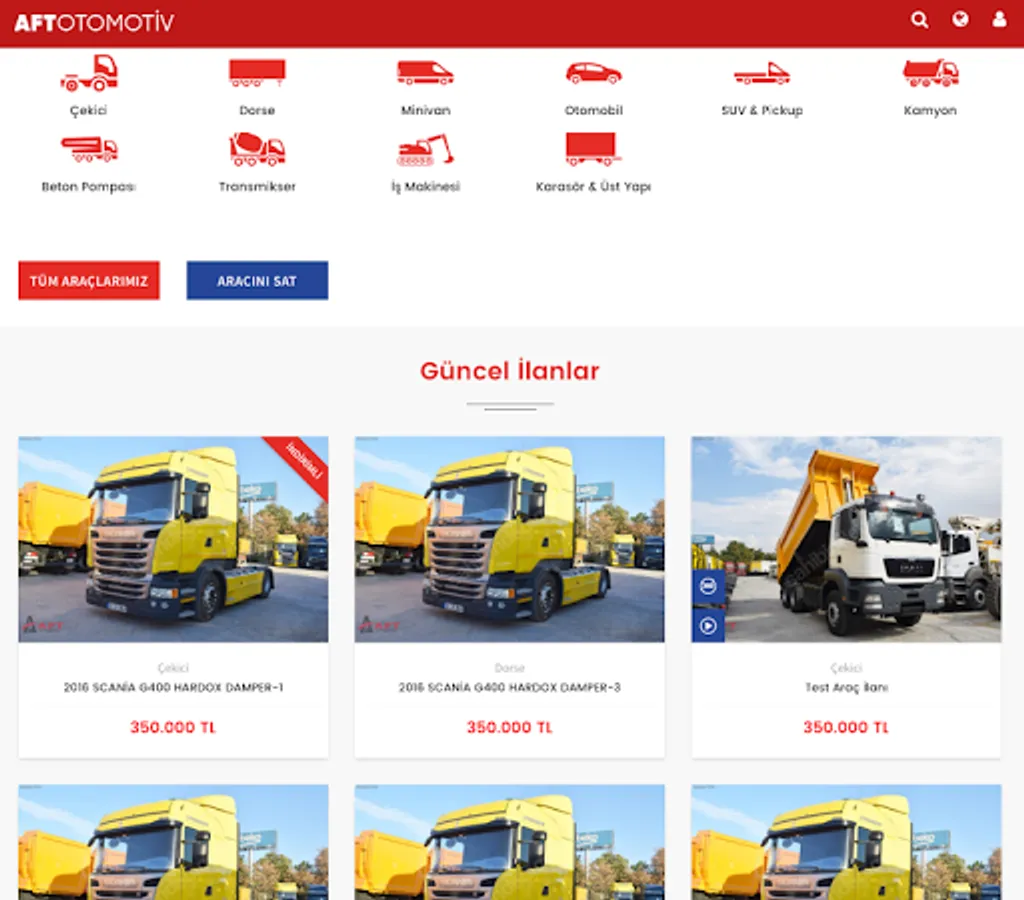 Aft Otomotiv was founded in Erzurum and after a short time it opened its second branch in Ankara and started to serve in both cities. 2. Hand Truck, Truck, pickup truck and other commercial vehicles in a wide catalog and customer satisfaction based sales principle continues to serve. . .