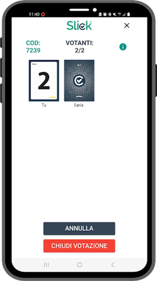 At each vote, users have the opportunity to choose their "card", i.e. their vote, and can confirm.