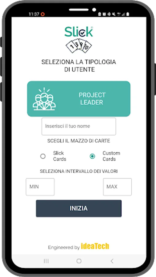 The app manages the virtual rooms that participants can access in order to vote. Each virtual room is created and managed by the Project Leader (with the role of Scrum Master in Agile jargon) - abbreviated PL - who dictates the voting times and discussion dynamics. The team meets in virtual or hybrid form, using the traditional video conference channels used in the company.