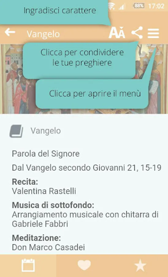 Share on social prayers directly from the app. You can send in all circumstances of life a prayer to the loved one.