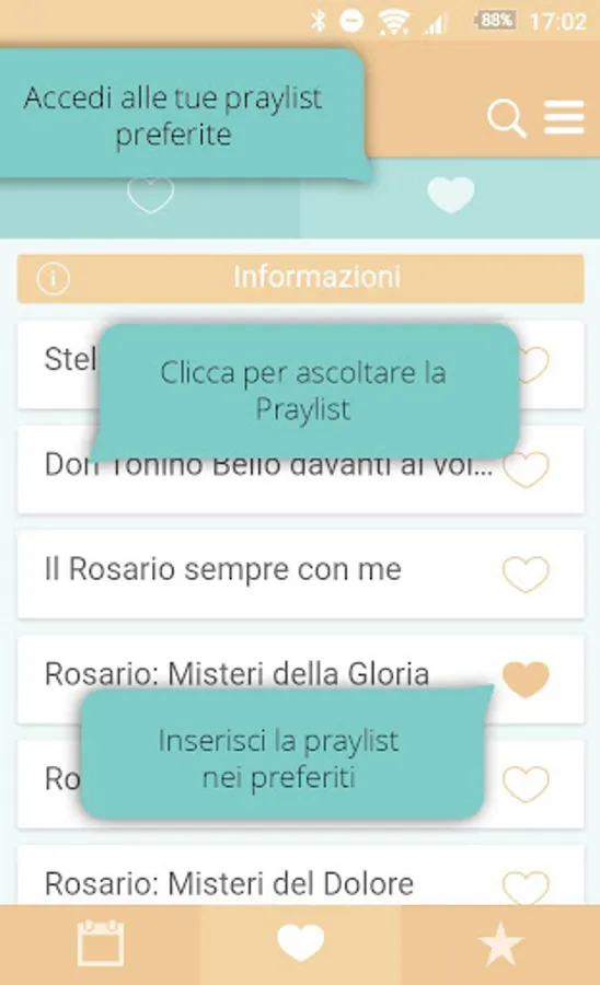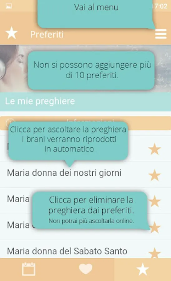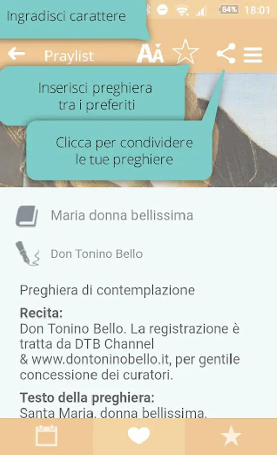 It 'an app that fits your life. Finding the time, the place and the silence suitable for prayer is not simple. So you can hear the prayers and go to work by car or on foot. You can hear the prayers the night before going to sleep or rest days strolling through the trees of a park or along the beach lonely sea.