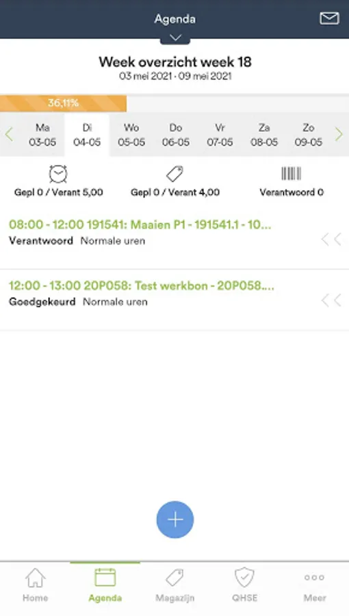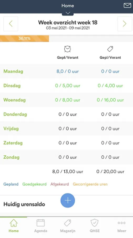 You can now always see your current and planned hours from the dashboard. By choosing planned hours you enter the agenda. When you enter the current hours, you will be taken to the hour overview. You can now see in your calendar whether you have already accounted for the planned hours.