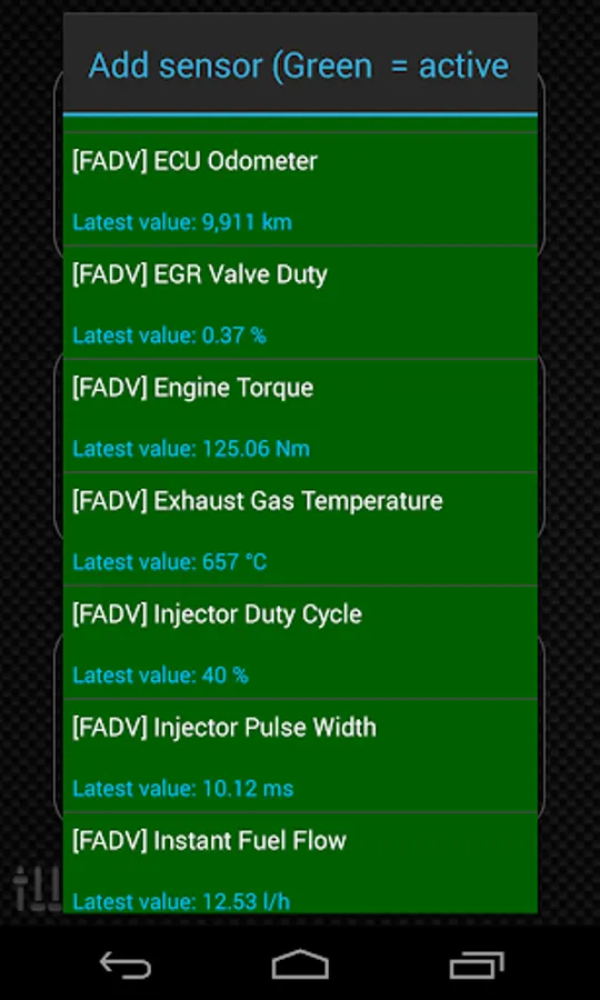 Advanced EX is a plugin for Torque Pro, extending the PID/Sensor list with more than 20 specific parameters from FIAT vehicles, including: