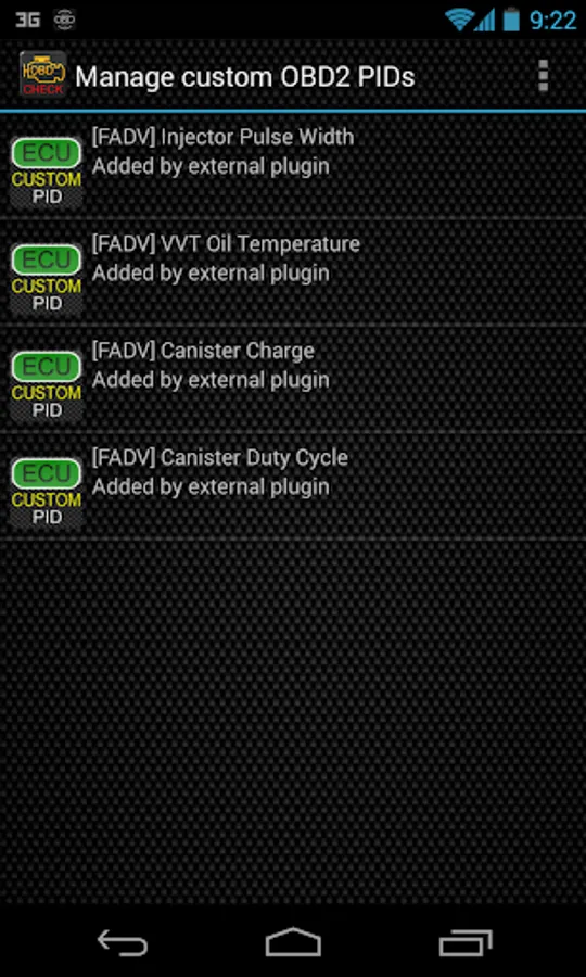 7) Usually this screen will not display any entries, unless you have added any pre-defined or custom PIDs in the past.