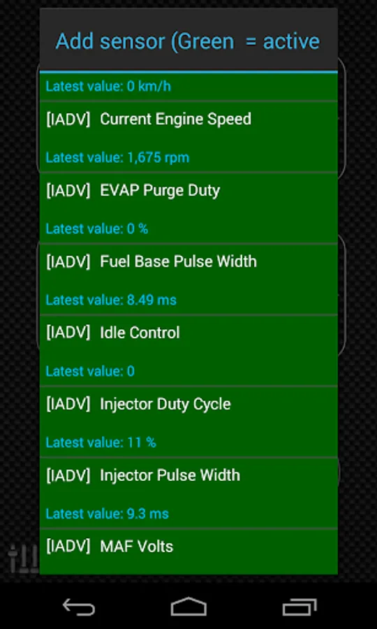 Note: Some sensors will be calculated real-time based on others. Make sure that you keep all sensors to avoid calculation errors.