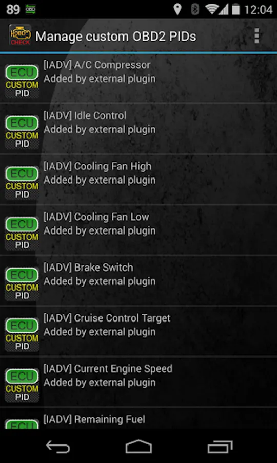 7) Usually this screen will not display any entries, unless you have added any pre-defined or custom PIDs in the past.