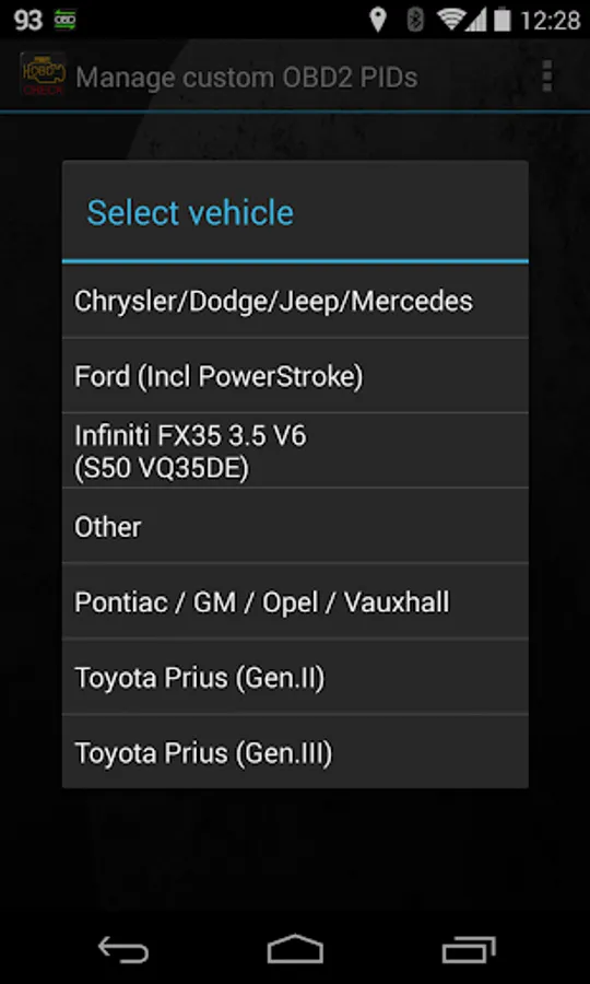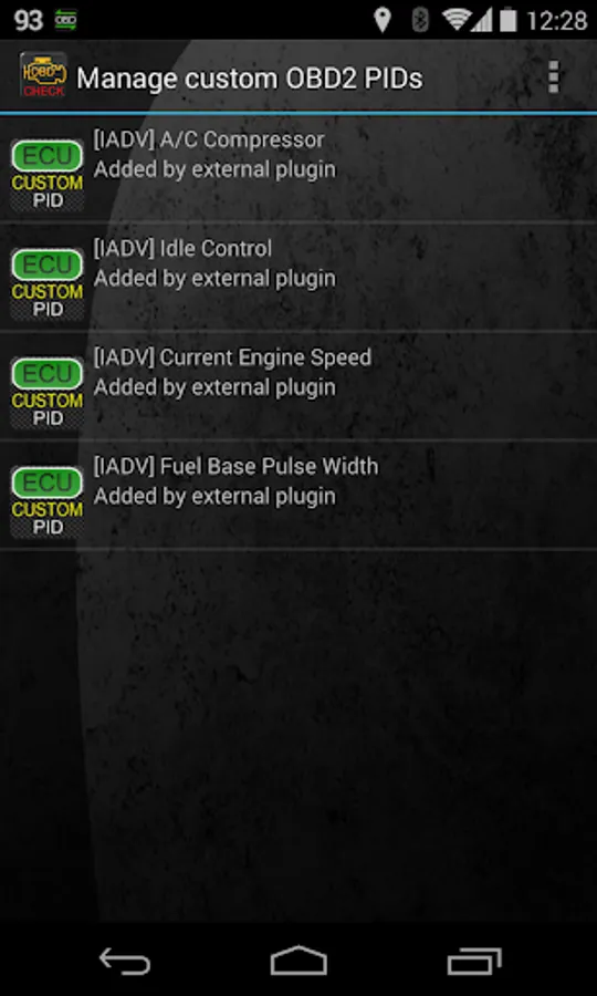 7) Usually this screen will not display any entries, unless you have added any pre-defined or custom PIDs in the past.
