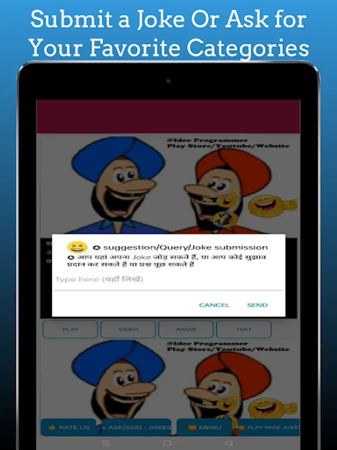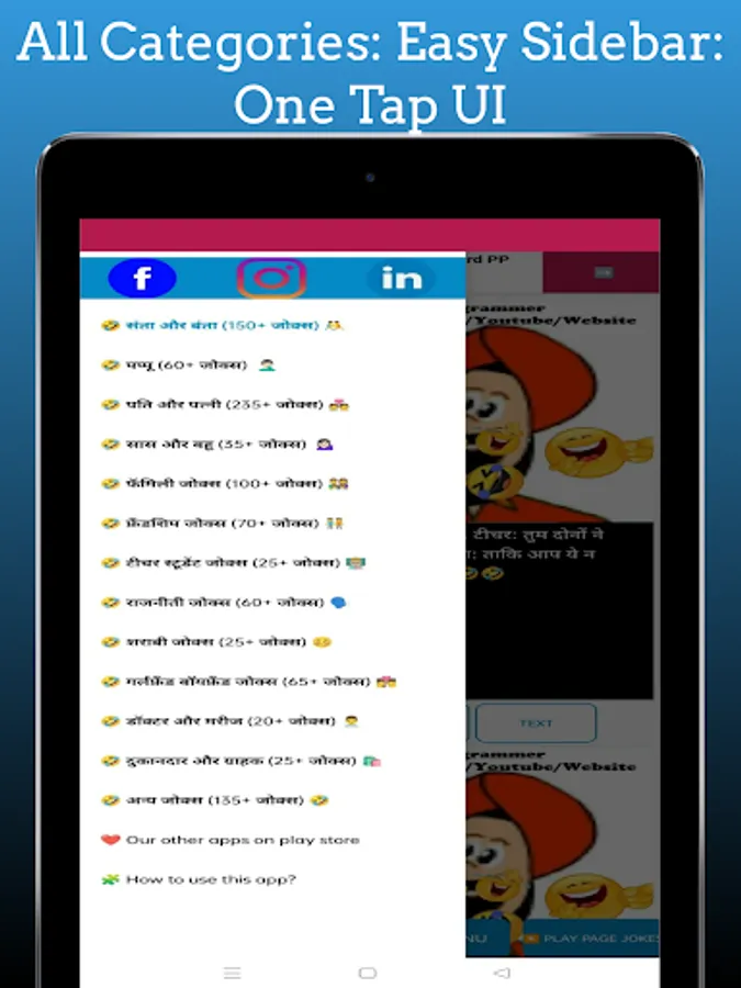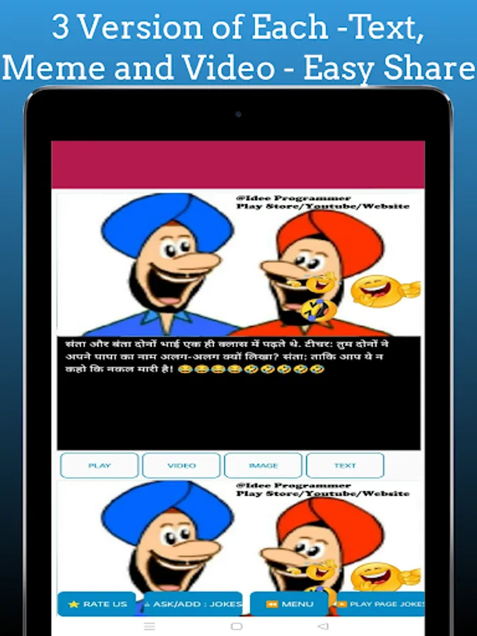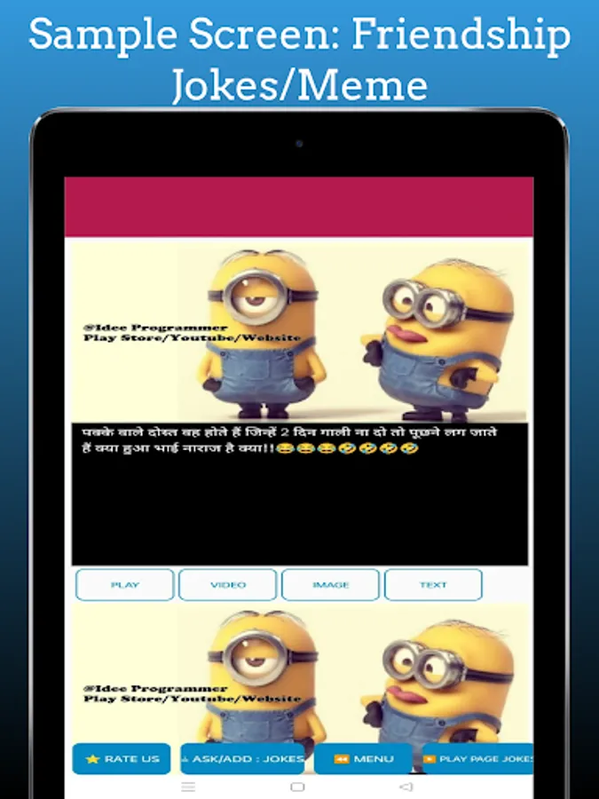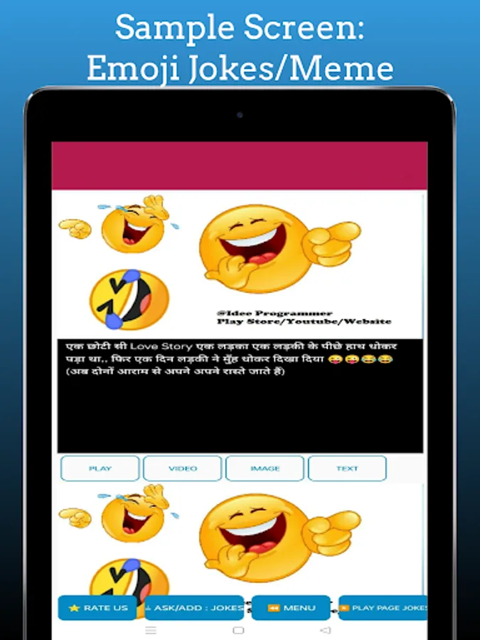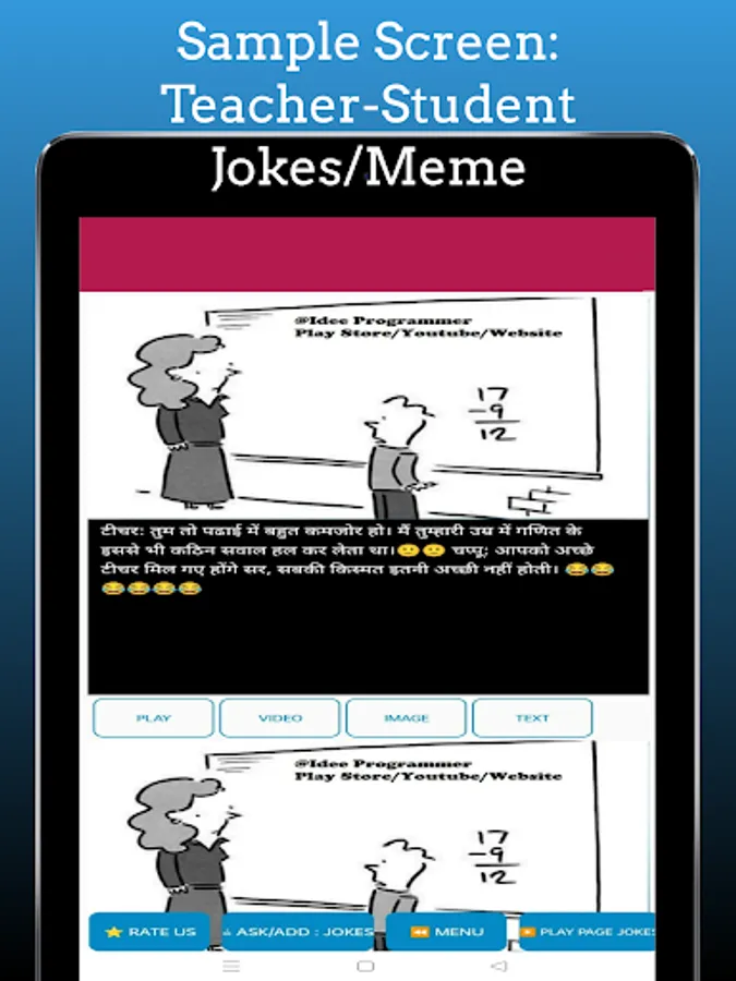 All our jokes and memes are presented in Hindi, making it easy for you to share with friends and family who understand the language. Whether you're looking to spread joy, cheer someone up, or just need a quick break from the daily grind, The Joke Spot is the perfect app for you.