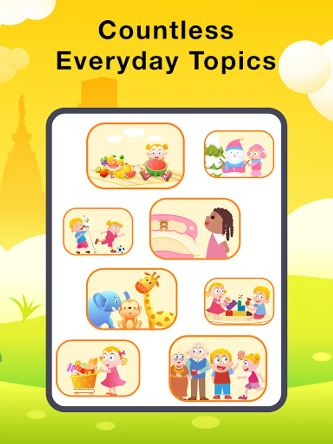 Still images are boring. Kids love animation! Be it an apple, grapes, a cat, or a dog, we bring them to life to make English engaging. Kids learn the pronunciation and spelling of any word in one joyful animation.