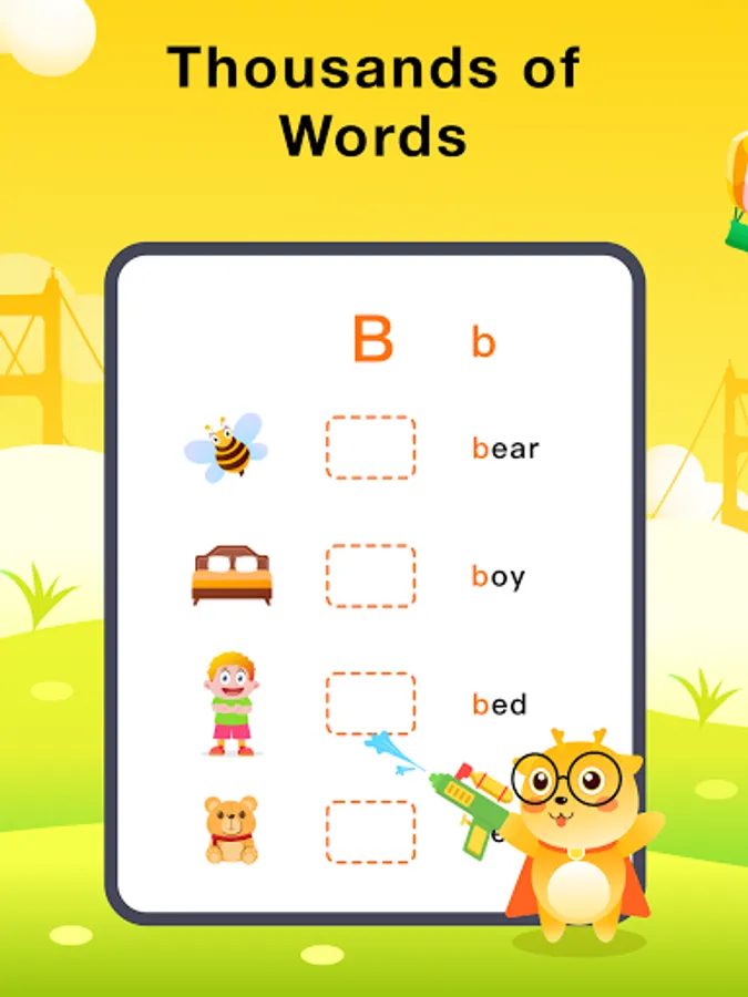 In this fully animated app, every word and sentence the child sees comes with a short animation, so kids just need to do what they do best — stay curious and immerse themselves in a world of moving pictures that make the alphabet, phonics, vocabulary and phrases come to life!