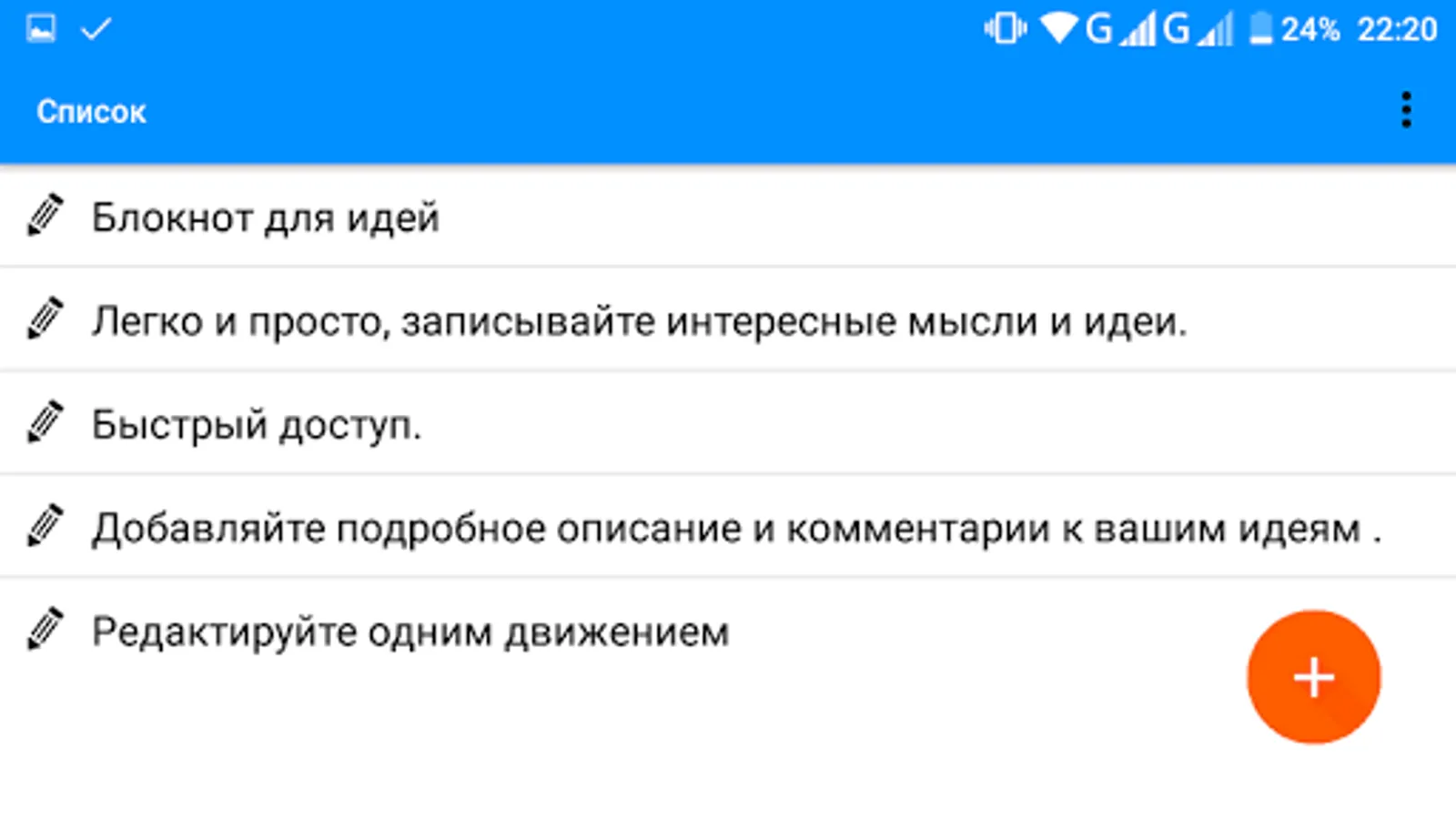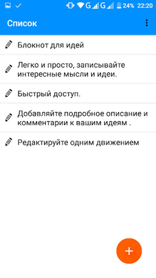 Notebook for ideas has a simple functionality that allows you to quickly, and without the distraction without making unnecessary movements to record the idea.