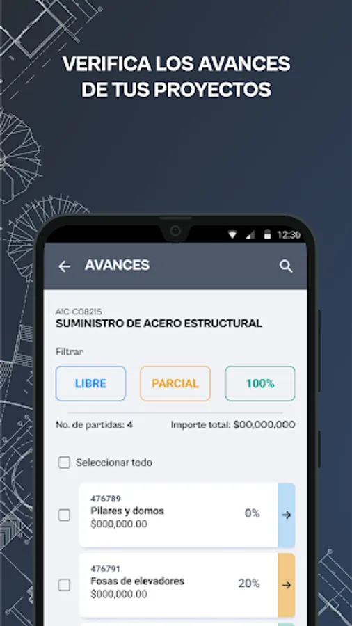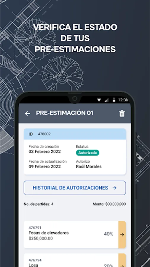 In addition to recording progress, you can send a pre-estimate and check the status of each of the pre-estimates and checklist.