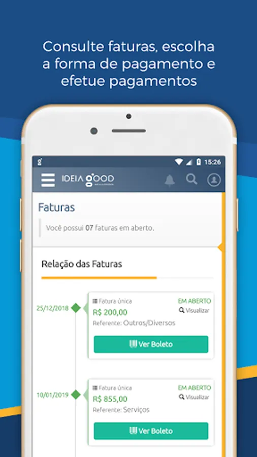 For APP it is possible to request and contract services, change configurations, check and change resources of contracted services, choose the best form of payment, make payment through APP among other functionalities.