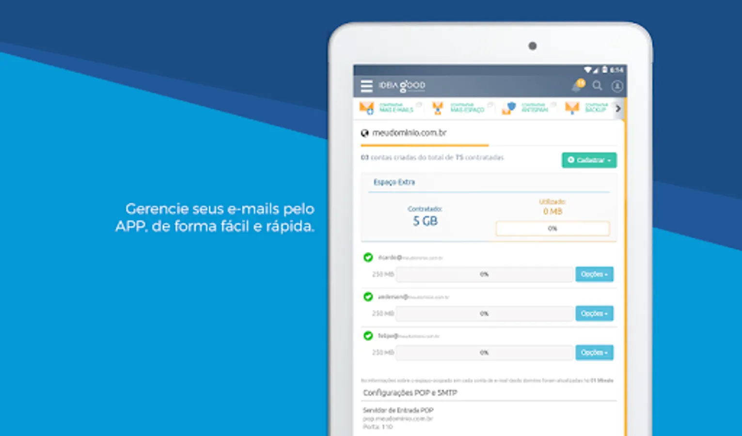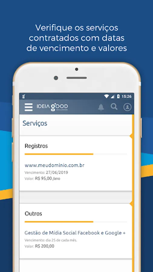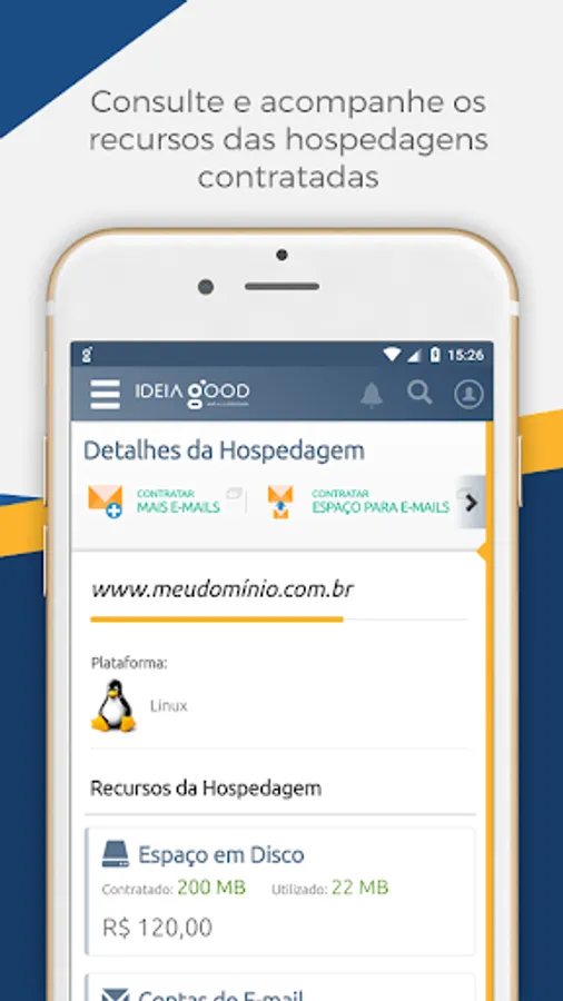 The Ideia Good Client Panel APP is an application for customers to manage their contracted services, be it hosting, domain registration, e-mail, platforms, extra services, information, knowledge base, support tickets and requests , financial, useful tools, and much more.
