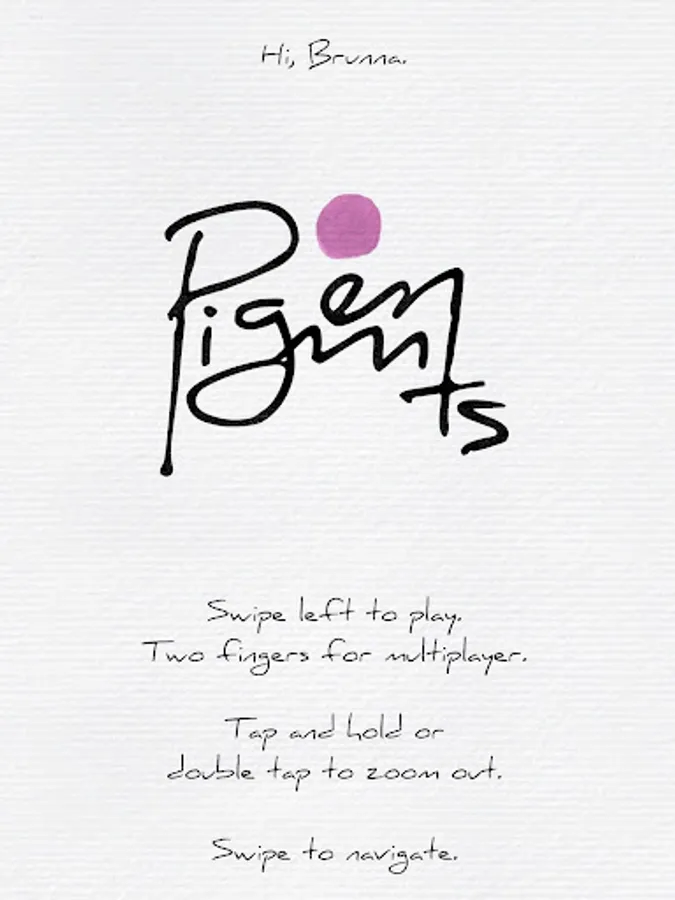 With a novel navigational interface based solely on gestures, Pigments is presented over a single environment where the player moves by pulling and pushing the canvas to perform several menu actions: