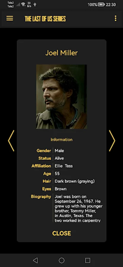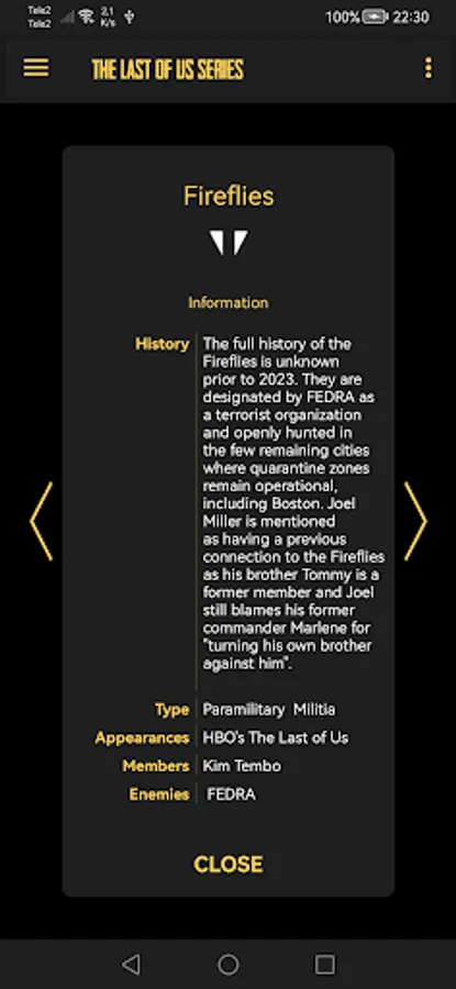 Explore the post-apocalyptic world of 'The Last of Us' with our unofficial app. Get in-depth information on characters, locations, groups, and episodes from the hit HBO series. Stay up-to-date with the latest developments and dive deeper into the story with our detailed descriptions and exclusive content.