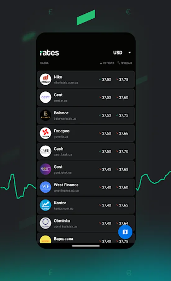 The latest commercial rates in the city: American dollar, Euro, Polish zloty and British pound prices in hryvnias. Find the best place to convert your cash and keep yourself posted about the rates changes.
