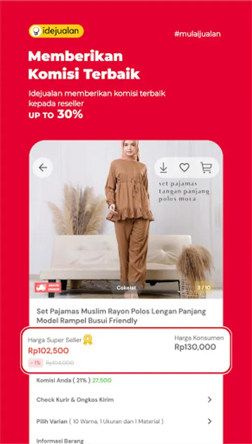 The Idejualan application is a Business to Business (B2B) platform that builds collaboration between suppliers and resellers. This application provides selling ideas to resellers who want to start selling, provided thousands of products from suppliers that are ready to be marketed without having to think about the process of stocking goods, packing, and shipping. This application also helps suppliers or SMEs to market their products. Thousands of products are ready to be marketed with an easy and fast order process through the Idejualan application.