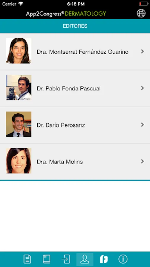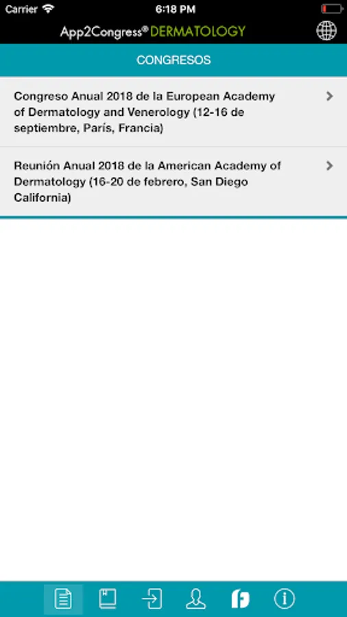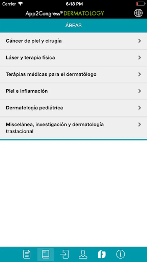 A simple menu allows to locate and consult the information available in the App by events or by clinical areas, integrating this last option the data of all the incorporated congresses.