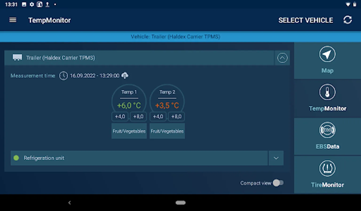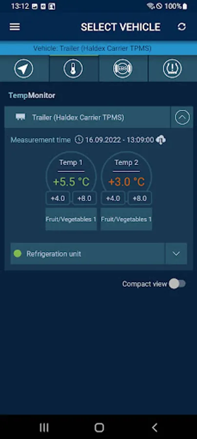 The app cargofleet Driver S is a free standalone application*. An Internet connection via mobile phone or WLAN is required for use. The app enables the display of telematics data from idem telematics systems on the mobile phone or tablet of the driver or dispatcher. In addition to temperatures from the cooling system, EBS data, data