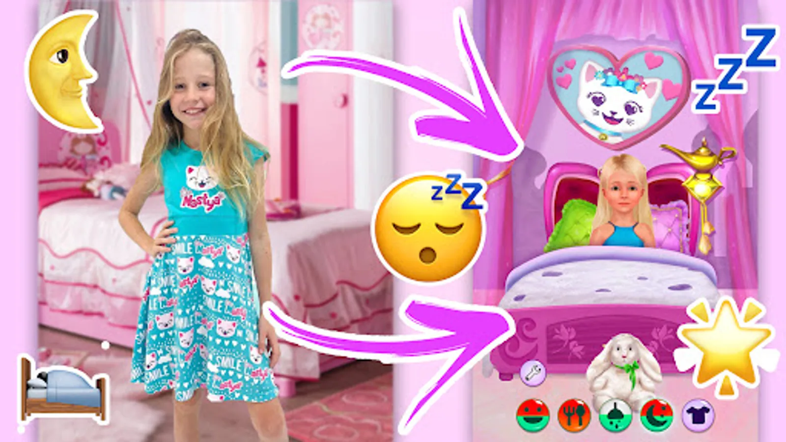 If you watch Like Nastya vlog, this game is for you! Here you can take care of Nastya, buy food, eat, take a bath, put to bed, play funny mini-games, customise your home. And beautiful graphics and amusing music will not let you get bored. Welcome!