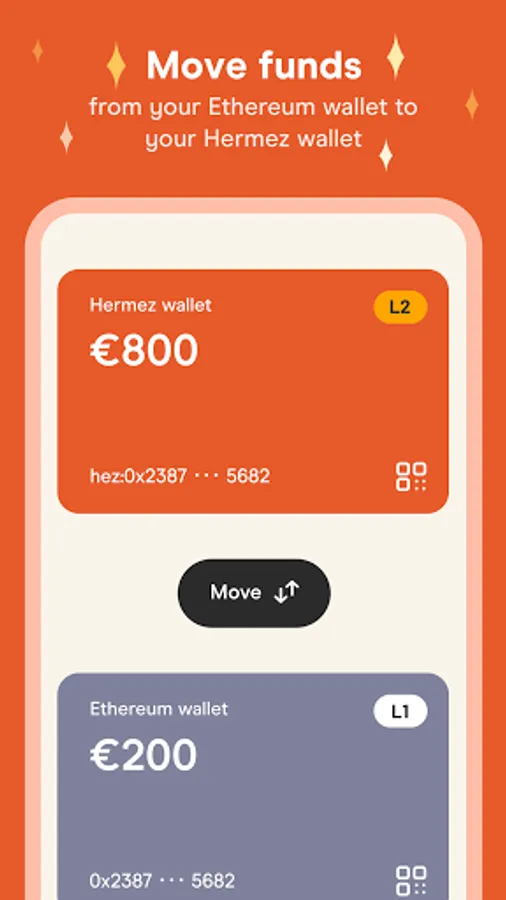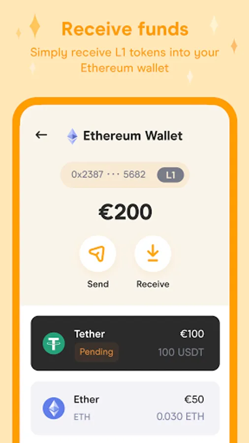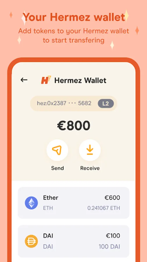 Receive L1 tokens to your Ethereum wallet first and move them to your Hermez wallet with a simple transaction