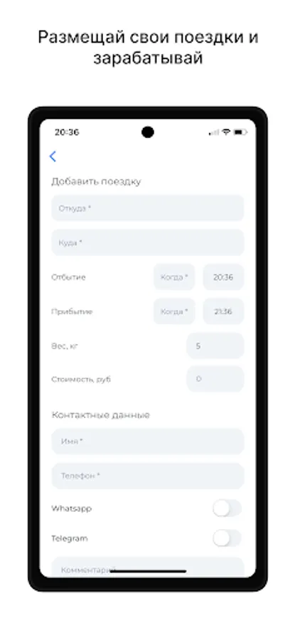 * Post your trips and earn. Post your ad so that the right person can see it.