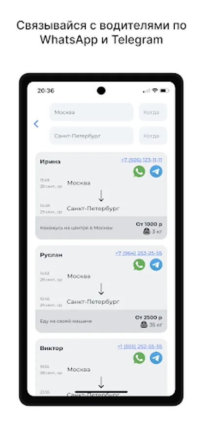 * Find a carrier at a convenient day and time, and contact him by phone or via WhatsApp and Telegram messengers.