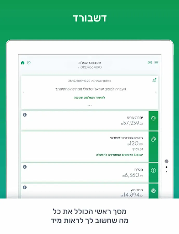 *ההורדה והשימוש באפליקציה הן ללא עלות, כשירות ללקוחות העסקיים של בנק מרכנתיל בלבד