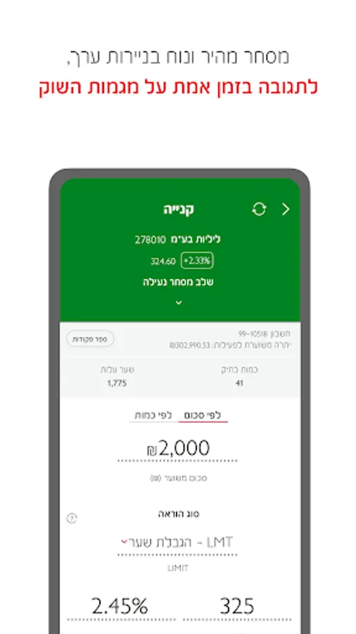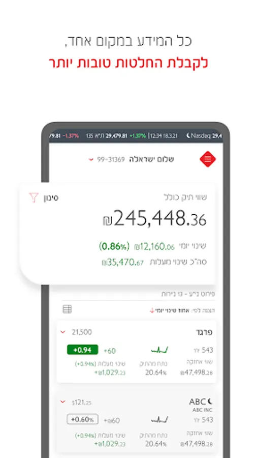 In Bank Hapoalim's Capital Market Trading Application, you will find a variety of advanced tools for making investment decisions. Now trading is simpler, faster and more convenient: from searching for paper, through receiving information, giving instructions, buying and selling operations and more.