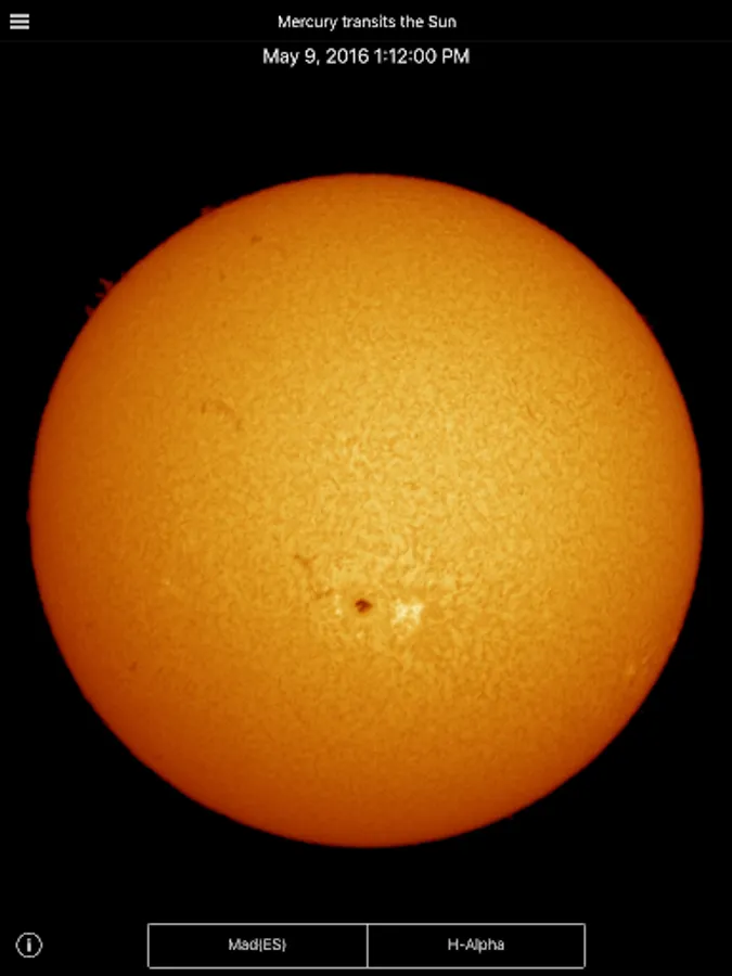 The observations are made using a Celestron CGEM mount and two telescopes: a Coronado Solarmax II 90, in H-alpha spectral range, and a Bresser AR-102, in white-light spectral range. The images are taken and shown every 30 seconds approximately.