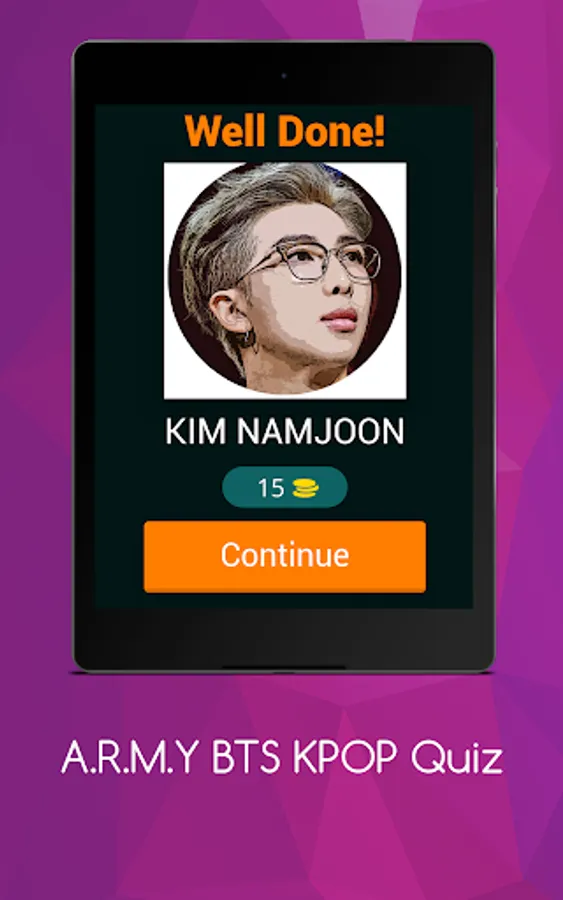 BTS fans! This is the game for you! Test your knowledge of how much you know BTS (Bangtan Boys). This app has a Quiz challenge for A.R.M.Y BTS, where you will be asked questions about BTS songs, members, etc... Enjoy!