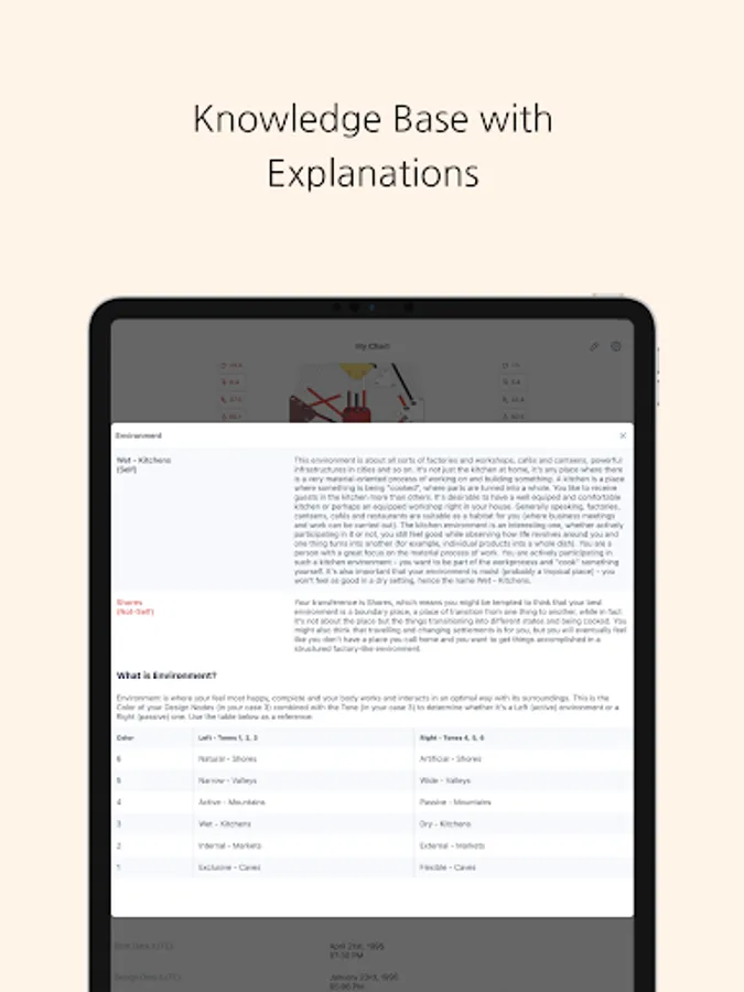 - Knowledge base on how to find any information in the Chart yourself and what it means, with reference tables
