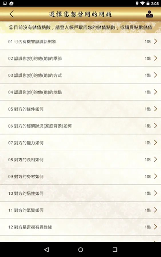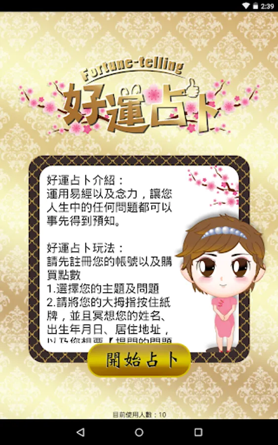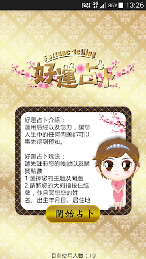 本APP需註冊個人帳號並購買點數儲值,需要使用點數才能進行占卜