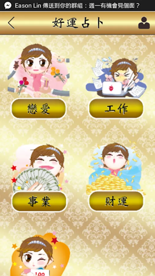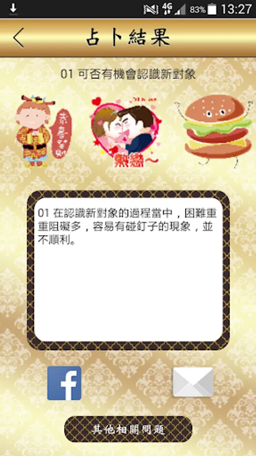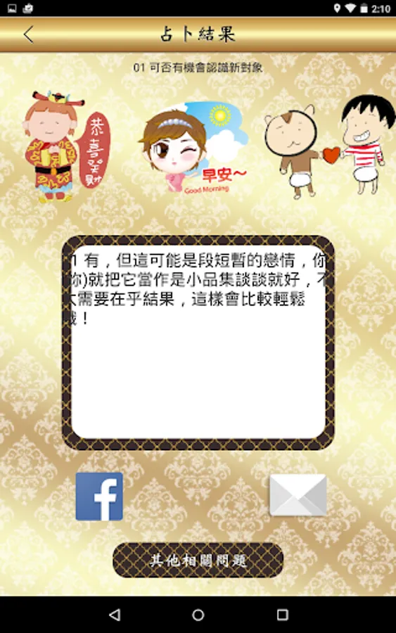 即可觀看占卜結果以及分享到facebook,Line,E-Mail
