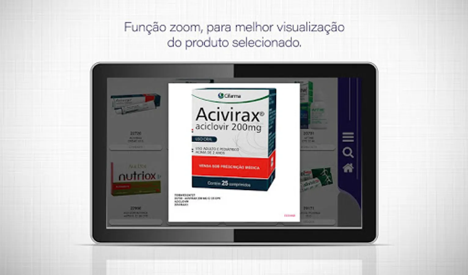 ☆ Smart search system. It enables the search of products by code, brand, active principle, commercial reference.