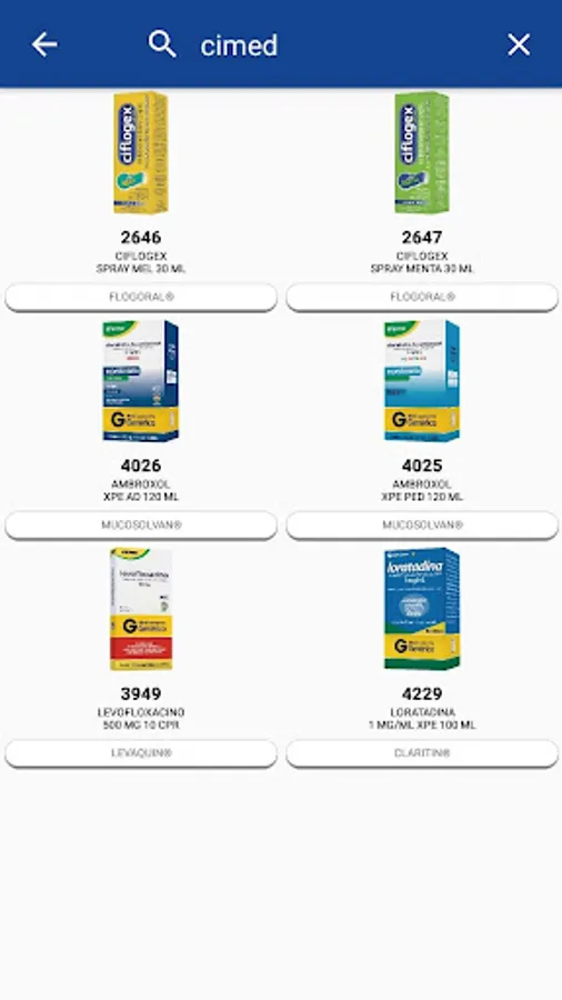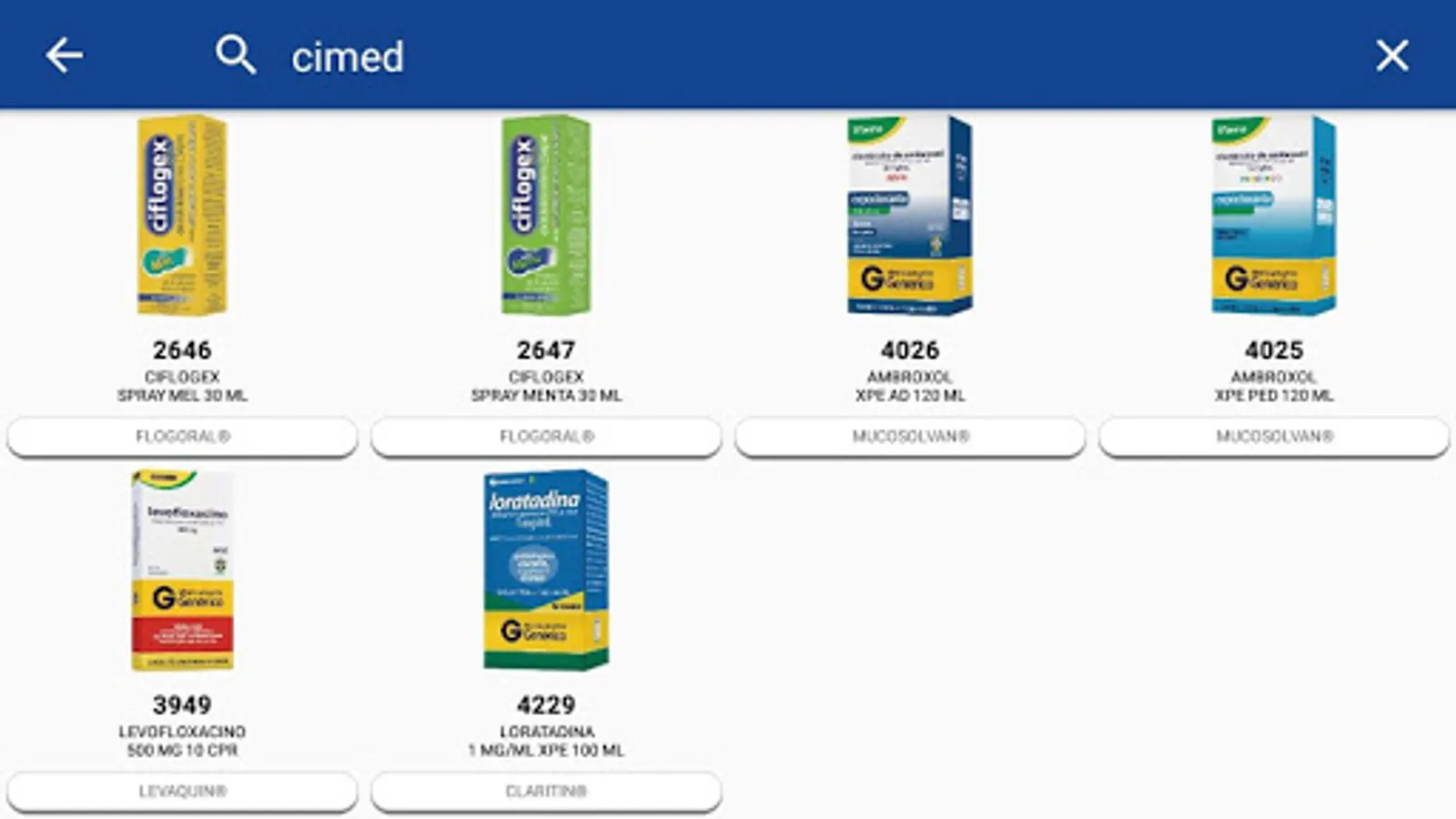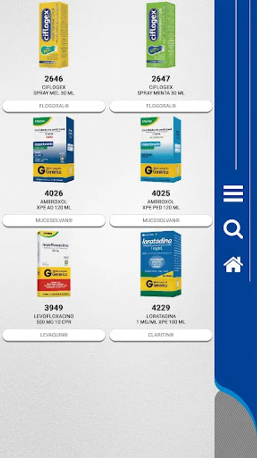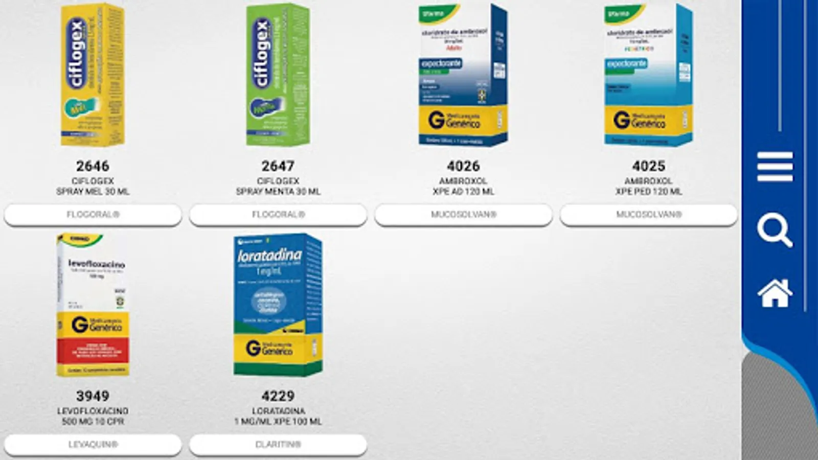 ☆ Smart search system. It enables the search of products by code, brand, active principle, commercial reference.