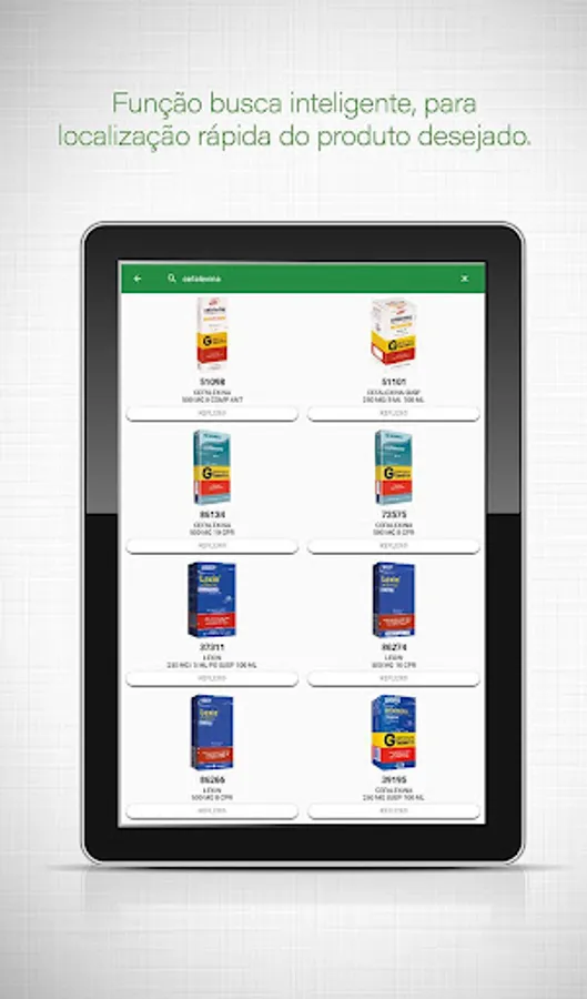 ☆ Smart search system. It enables the search of products by code, brand, active principle, commercial reference.