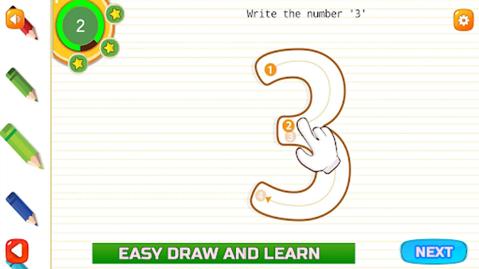 Numbers come to life through our base-10 system. Ten levels of interactive gameplay make counting fun and educational. Kids identify and draw numbers to progress, earning rewards and mastering each level.